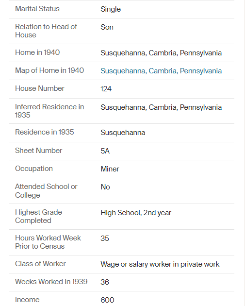 This is part of the 1940 census which was right before Ruby enlisted into the army. This picture shows his job, how much he was making, where he was living, and what grade he finished high school at.
