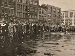 This is a picture of men in Harrisburg, Pa lining up to go to the ew Cumberland Depot. Harrisburg despite being a drive is where Ruby enlisted into the Army.